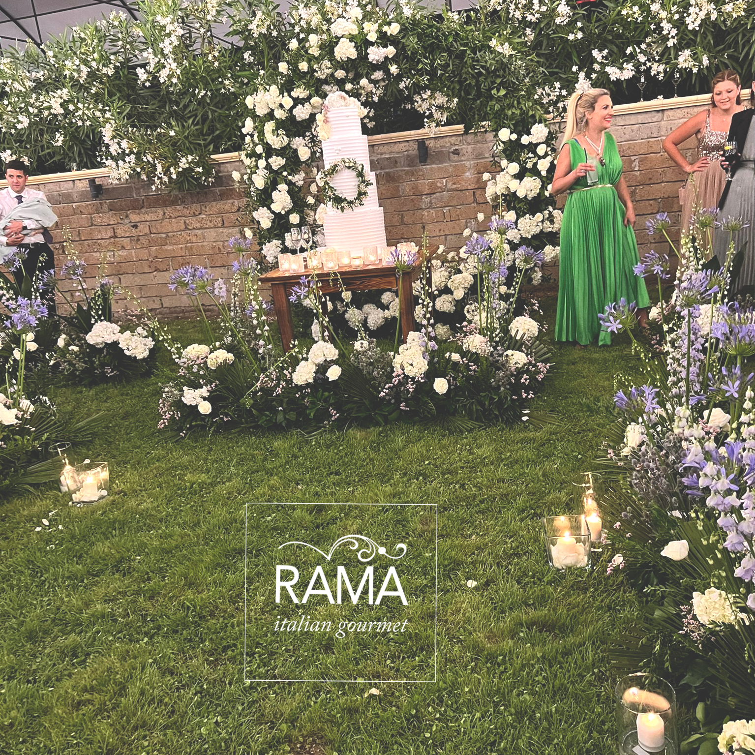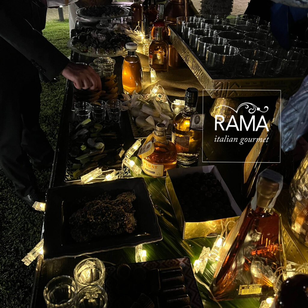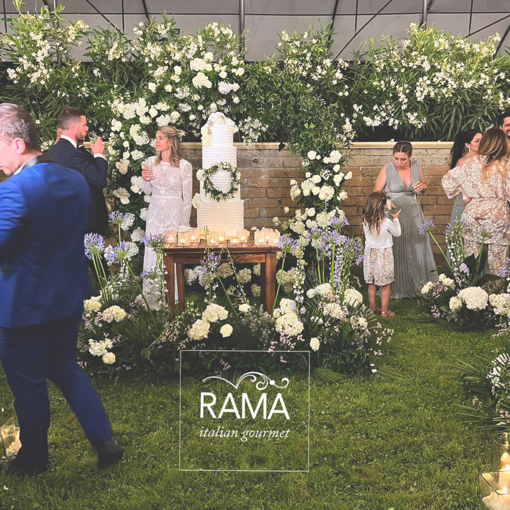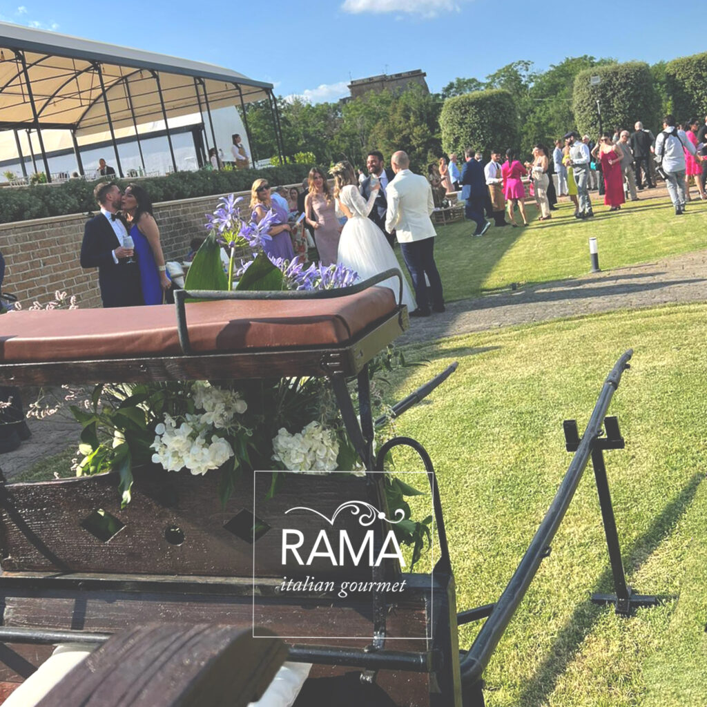 Le ex serre sono state sfruttate per predisporre il banchetto nuziale e le ampie zone verdi sono state allestite e hanno accolto salottini, musica, intrattenimento e i Gran Buffet ricchissimi di portate, quello iniziale dove non è mancato lo showcooking e quello finale di frutta e dolci.