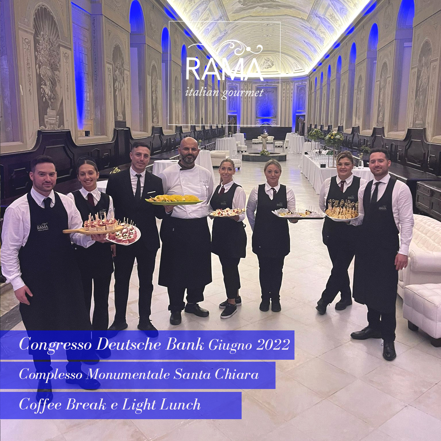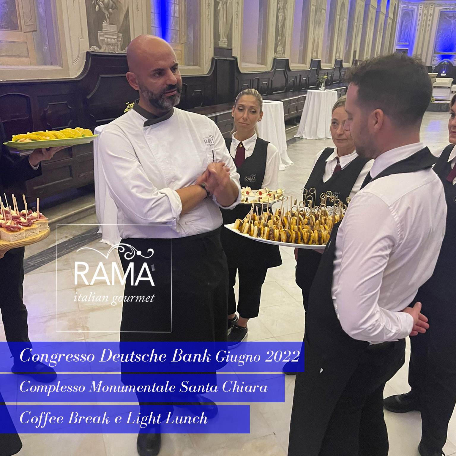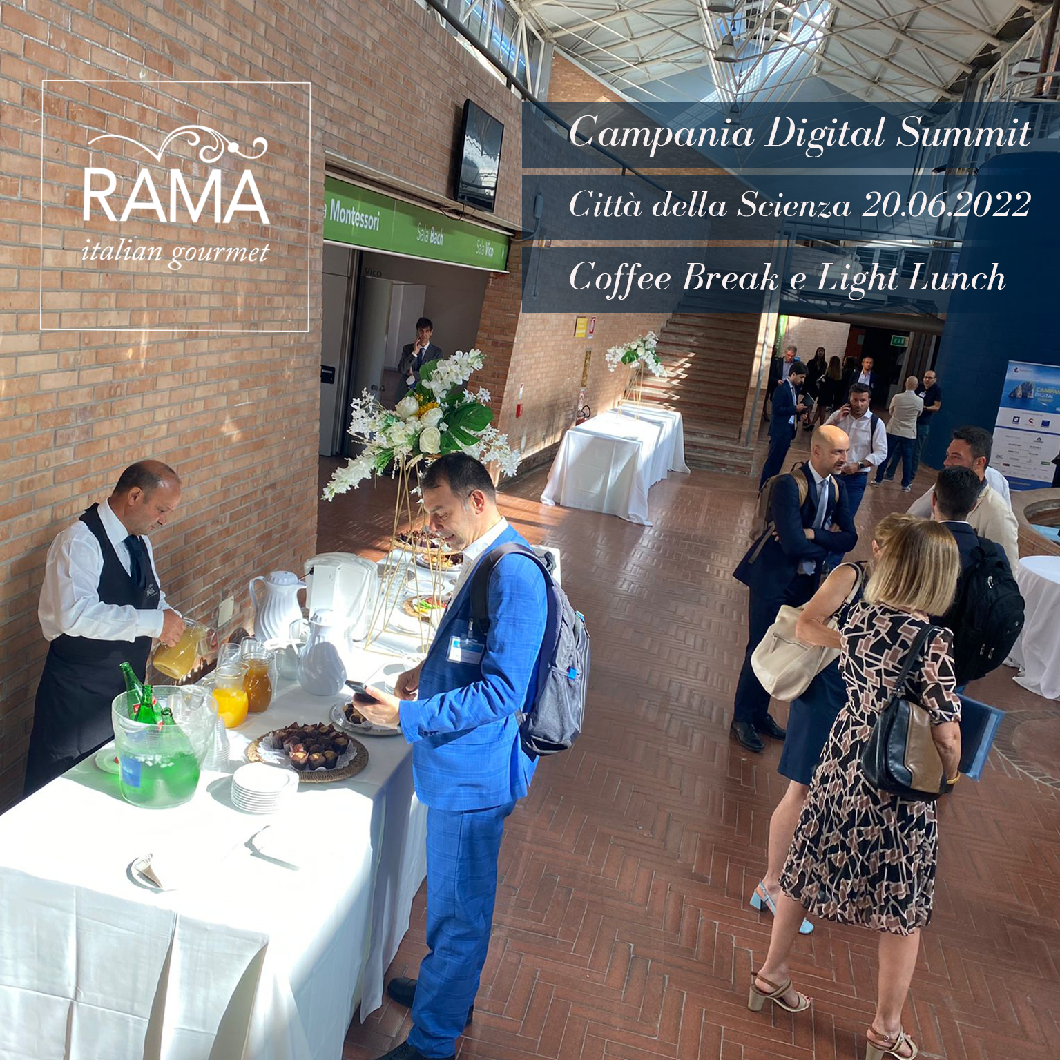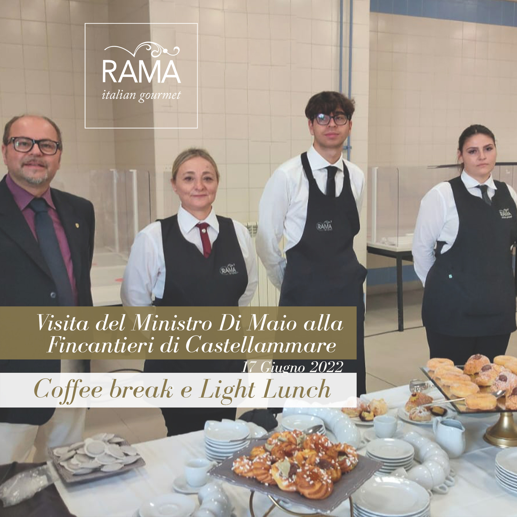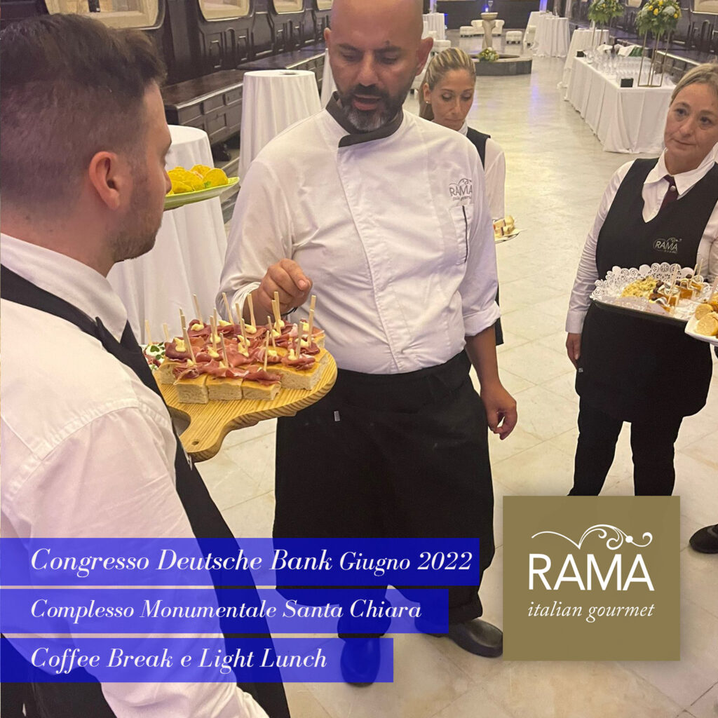 Come sapete, Rama Eventi, distinguendosi per professionalità, serietà, discrezione ed eleganza, oltre che per la qualità del cibo e del servizio, è molto richiesta in contesti istituzionali dove l’ impeccabilità è d’obbligo, pertanto il reparto aziendale Catering per MICE (meeting , incentive, congress ed Exhibition ) è più che mai impegnato. Dopo il catering servito in occasione della visita del Ministro degli Esteri Di Maio alla Fincantieri di Castellammare di Stabia (17 giugno 2022), la settimana scorsa abbiamo servito coffee break e light lunch in tre importantissime occasioni: