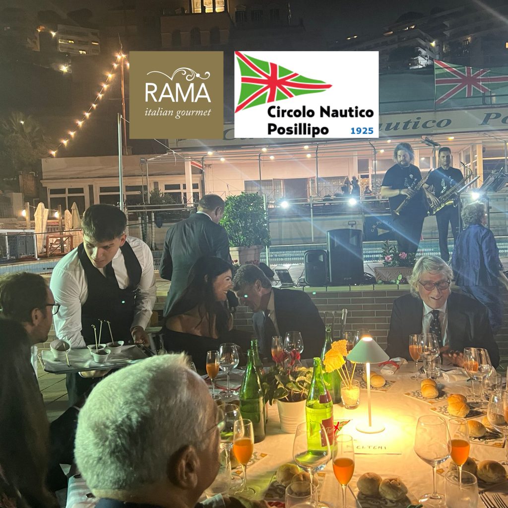 Un clima instabile ci ha impedito di capire fino all’ultimo momento se fosse piovuto, i soci del Circolo Canottieri ci tenevano particolarmente ad ambientare la cena all’aperto, vicinissimo al mare e alle barche. Ovviamente avevamo pronto il nostro piano B per disporre tutto all’interno, ma alla fine il cielo si è rischiarato e l’elegante cena ha avuto luogo all’esterno. Il mare calmo e le luci della città sullo sfondo hanno offerto un bello e suggestivo scenario, i soci hanno potuto godere dell’atmosfera serena e rilassata grazie allo staff di Rama che si è mosso intorno a loro con professionalità, discrezione e cura.